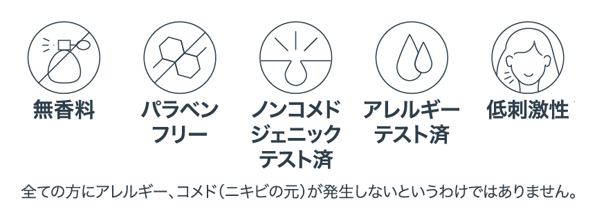 3.無香料、パラベンフリー、ノンコメドジェニックテスト済み、アレルギーテスト済みなど、敏感肌のことを考えた処方。